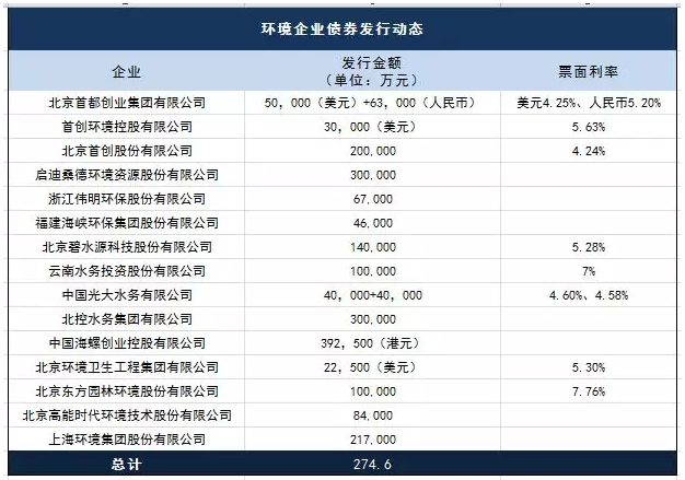 對于環(huán)境企業(yè)而言,發(fā)行債券是一種常見的融資手段,據(jù)不完全統(tǒng)計(jì),2018年以來,環(huán)保上市企業(yè)的債券發(fā)行規(guī)模至少達(dá)到274.6億元人民幣。